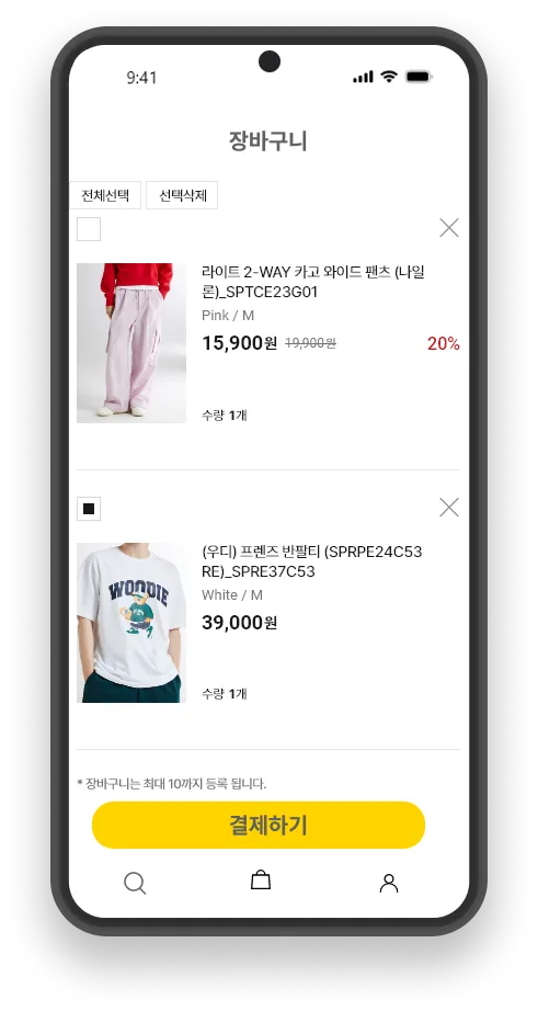 상품을 온라인 쇼핑몰처럼 쉽게 장바구니에 담고 모바일 결제 수단을 활용해서 편하게 결제 합니다.